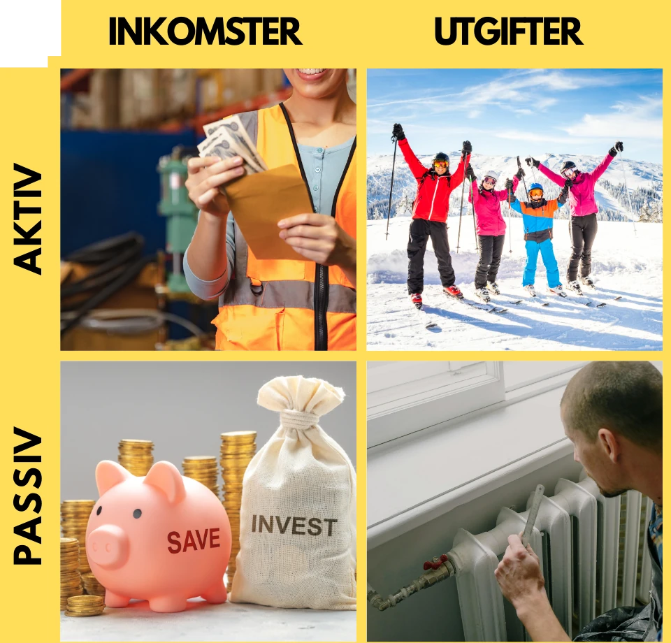 I tidigare inlägg i denna serie har jag definierat utgifter och inkomster som aktiva resp. passiva. Kort sammanfattat är en aktiv inkomst en inkomst som kräver tidsinsats. En passiv inkomst kommer oavsett om du lägger tid på det eller inte.